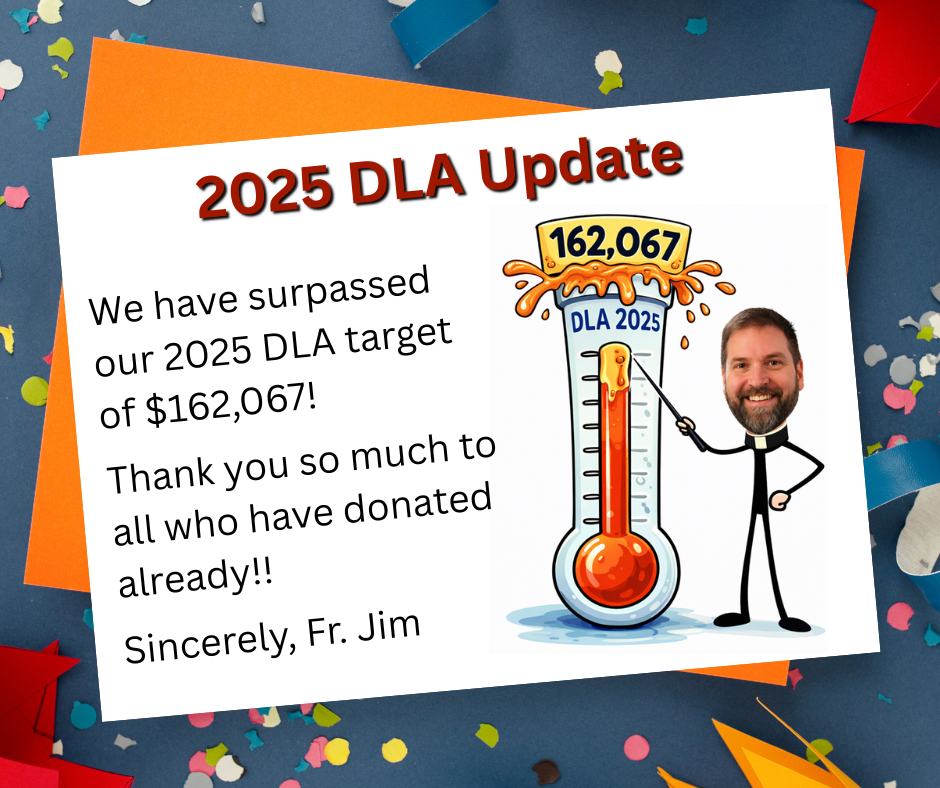 We have surpassed our 2025 DLA Target of $162,067! This means we are now in that ‘Golden Window’ in which all further donations to the 2025 DLA until January 31, 2026 remain 100% in our parish ASSESSMENT FREE.